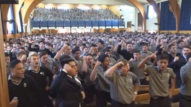 Viele kennen ihn als Kriegstanz oder als Vorgeplänkel zum Rugby-Spiel: der Haka. Was man auch daraus machen kann, zeigen neuseeländische Schüler eindrucksvoll in der Aula.