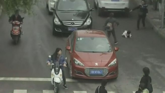 Großes Glück für ein zweijähriges Mädchen, dass in der chinesischen Stadt Xichang von zwei Autos hintereinander überrollt wurde. Es richtet sich quasi unversehrt wieder auf. Eine Überwachungskamera hielt den glücklich verlaufenen Unfall fest.