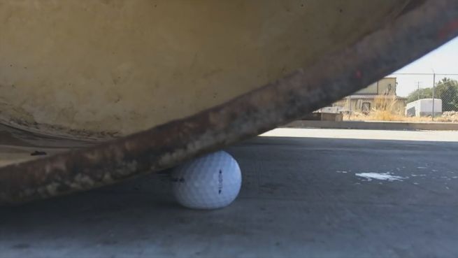 Golfbälle bekommen regelmäßig mit voller Wucht gegen den Kopf geschlagen. Das macht ihnen nicht viel aus. Was aber passiert, wenn sie sich von einer Dampfwalze überrollen lassen?