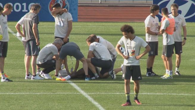 Die deutsche Fußball-Nationalmannschaft ist in Évian-les-Bains gelandet. Rund 2.000 Fans feierten das Team beim ersten öffentlichen Training. Doch die Freude währte nicht lange: Für einen Nationalspieler ist die EM schon wieder vorbei.